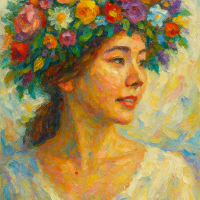 유화의 두텁고 번쩍이는 색채,
