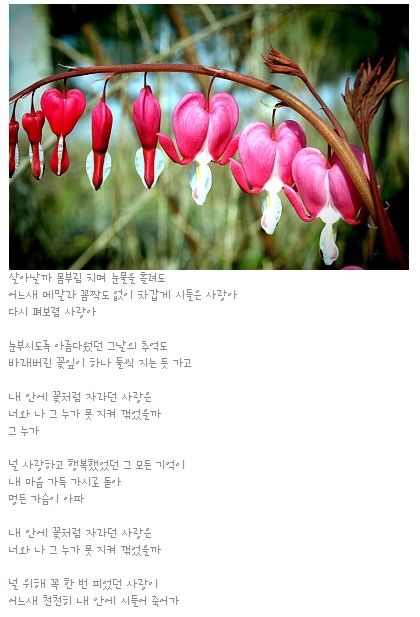 홀로 세상을 살아갈 수 없는 오늘의 삶 시간들 순수한 사랑 마음에 흐르기에 우린 인연의 사랑 만남으로 이어진다정다감한 행복의 삶을 살아가면서 알수없는 내일의 날을 참으며 살아갈수 있는 것이다