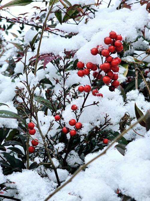설경속 꽃도 어여쁘다.