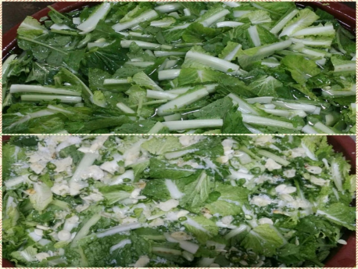 싱싱한 얼갈이, 열무를 정성스럽게 다듬어서 절단한후 여러번 깨끗하게 세척하고 고운 고춧가루, 마늘, 생강, 청양고추, 멸치액젖, 메밀풀, 그리고 수년간 간수를 뺀 천일염을 넣고 담근다.