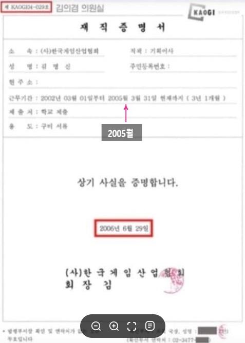 재직증명이라면 현재 재직중인 기간이어야하는데 2006년으로 기록했다.