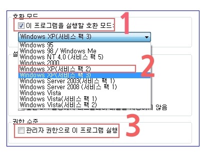 1. 이 프로그램을 실행할 호환 모드 클릭