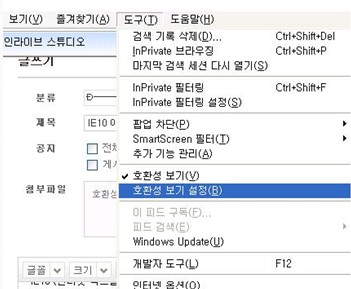 IE10 이상 브라우저 이용시 호환성 문제 해결 방법