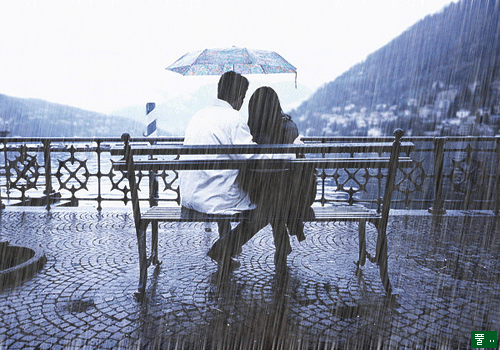 우리는 비를 맞고 있어요`