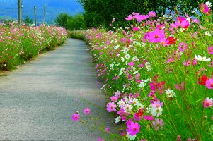 얇고 고운 코스모스 꽃길