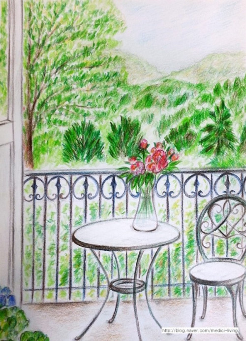 창가에 기대어 먼 하늘을 바라보며