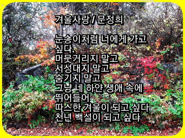 한 사랑이 예뻐 보이면모든것이 눈에 아름다워 보여여짙은 사랑의 그리움이 피어난영롱한 꽃 이뤄지시기를 바라옵니다