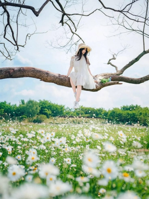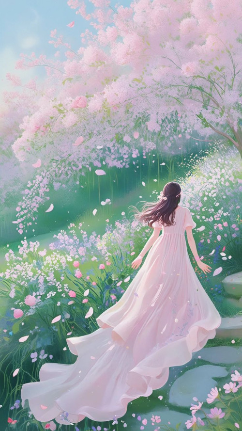 꽃잎이 머리 위에서 흩날린다.
