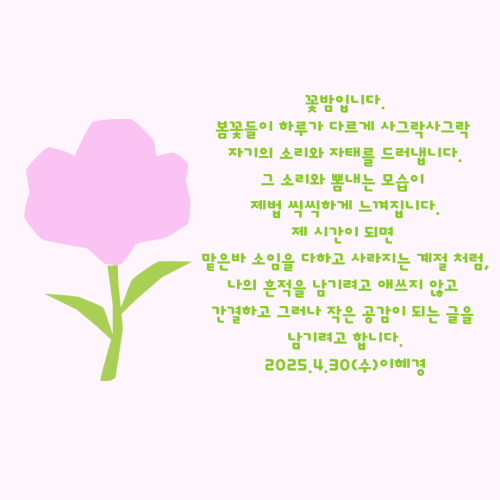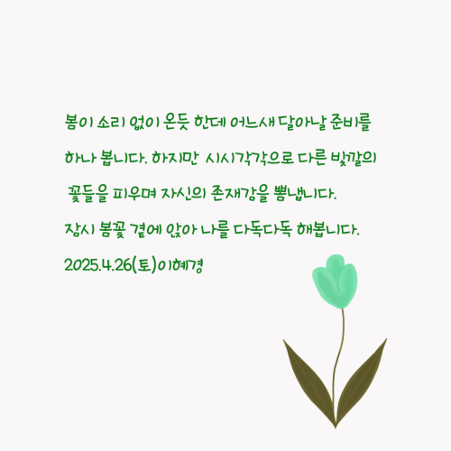 4월이 소리를 죽이며 또각또각 가고 있다.댓글 0
