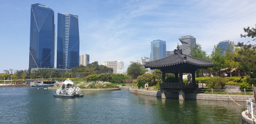 송도 인천 자유 무슨 지역 이더라.. 공원의 모습이 좋게 말하자면 세련 될대로 되었고